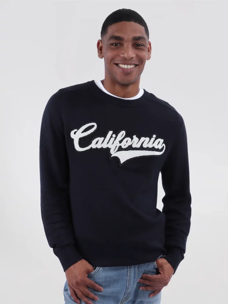 Classic crewneck sweater in a soft knit. Varsity-inspired California graphic at the front
