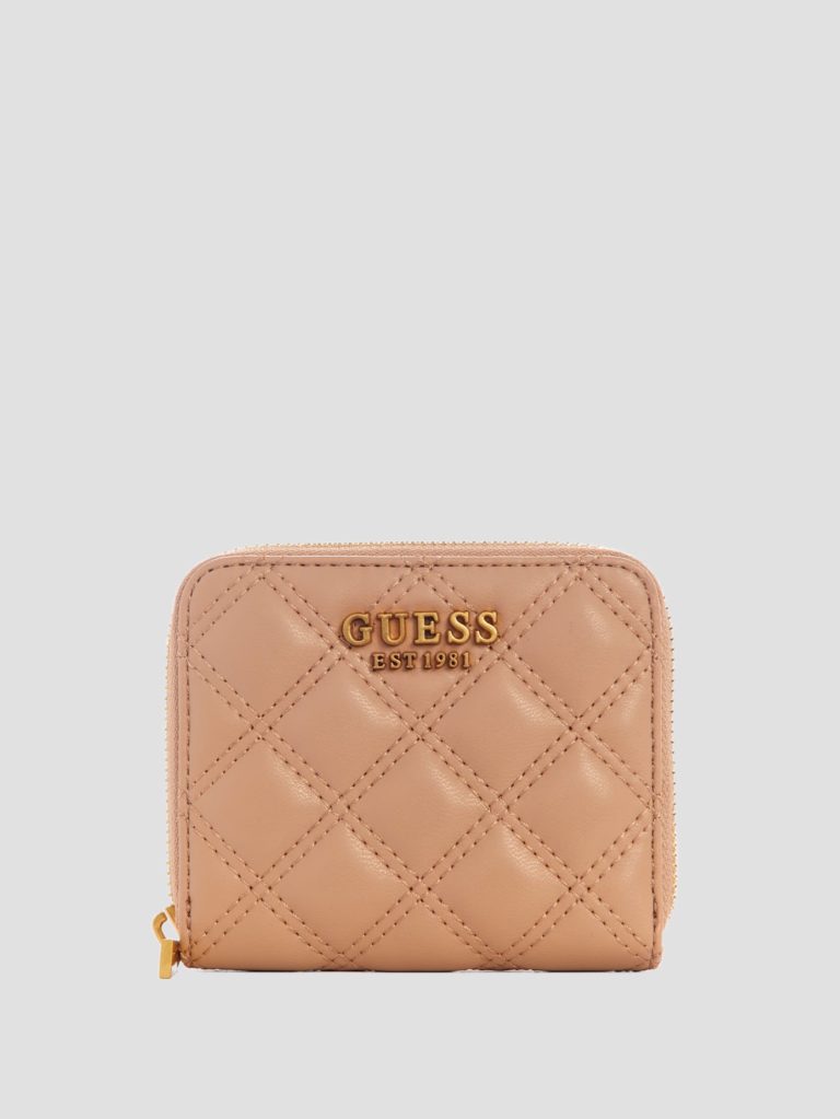 Petite in size but not in style, this compact wallet is featured in a quilted faux-leather construction with front logo hardware and a zip-around closure.