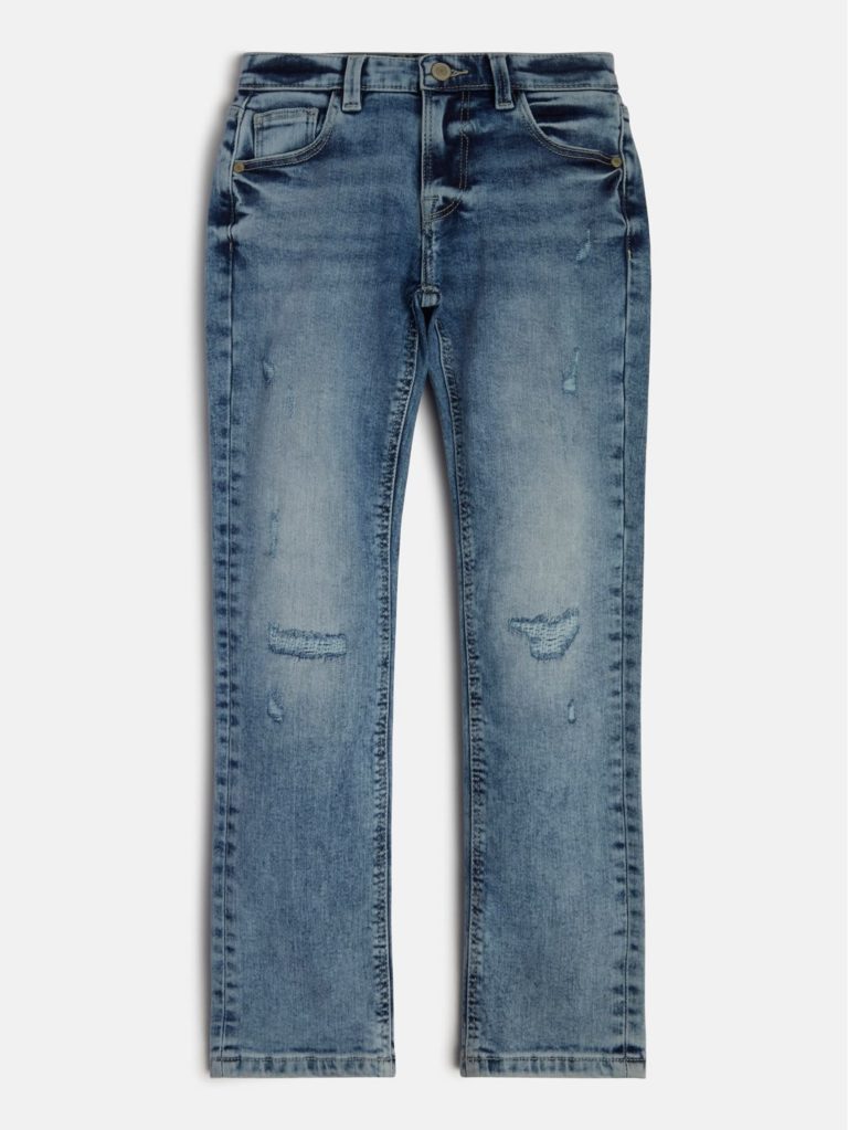 Get your little one ready in style with these trendy Straight Denim Pants for boys. Featuring a classic blue color with stylish abrasions, these pants offer a cool and casual look. The straight fit and durable denim fabric ensure both comfort and durability, perfect for everyday wear.