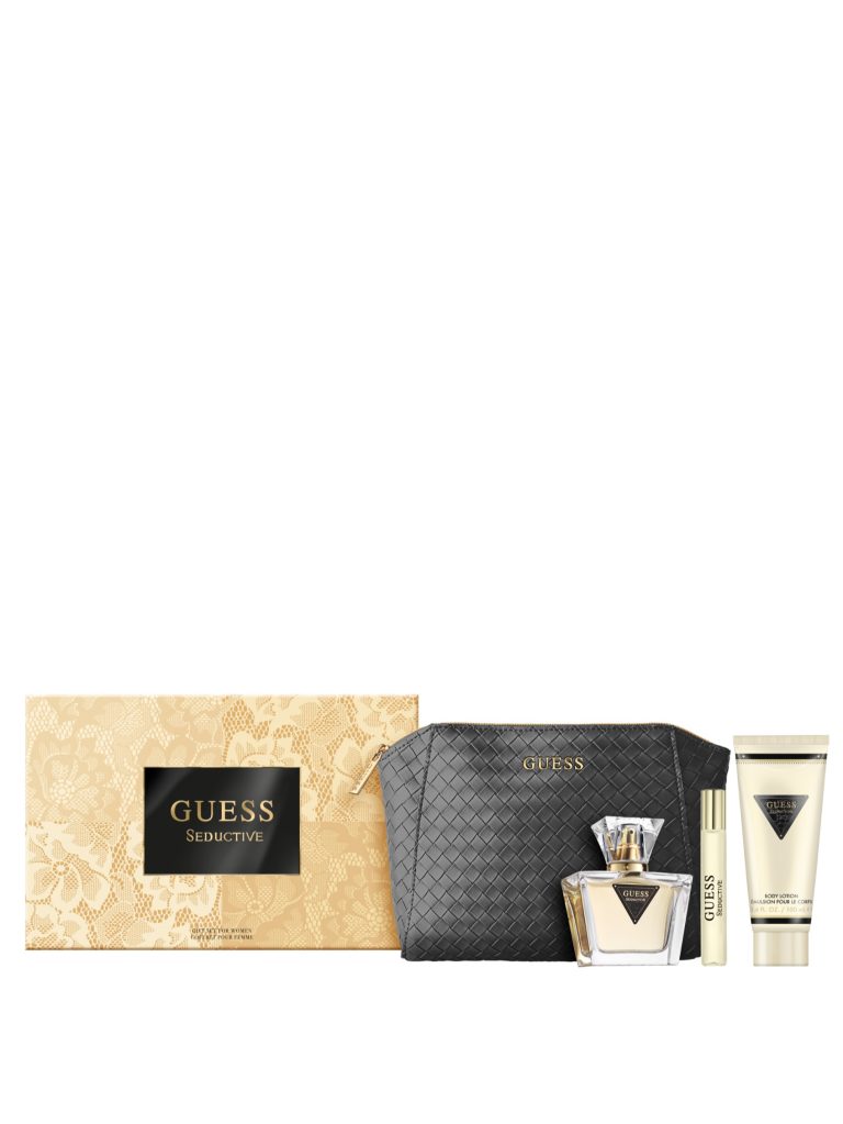 Fragrance Notes: Top – Bergamot, Blackcurrant, Crispy Pear / Mid – Orange Flower, Jasmine, Orris / Base – Vanilla, Olibanum, Cashmere Wood. Olfactive Family: Floriental Woody. Fragrance Story: GUESS Seductive is a sexy and alluring perfume for women that embodies the unique magnetism of the GUESS brand. Perfume Spray 2.5 Fl. Oz. Travel Size Perfume Spray 0.5 Fl. Oz. 3.4 Fl. Oz. Body Lotion & Pouch