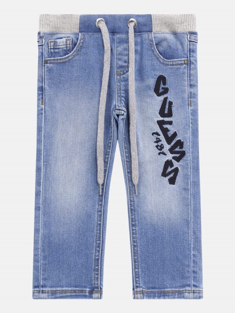 Get your little ones ready to play in style with our playful Blue Denim Pull On Pants (2-6). These pants feature a comfy drawstring waist and stretch waist for easy movement, while the logo detail adds a fun touch to their look. Perfect for ages 2-6, these pants are a must-have for any kid’s wardrobe.