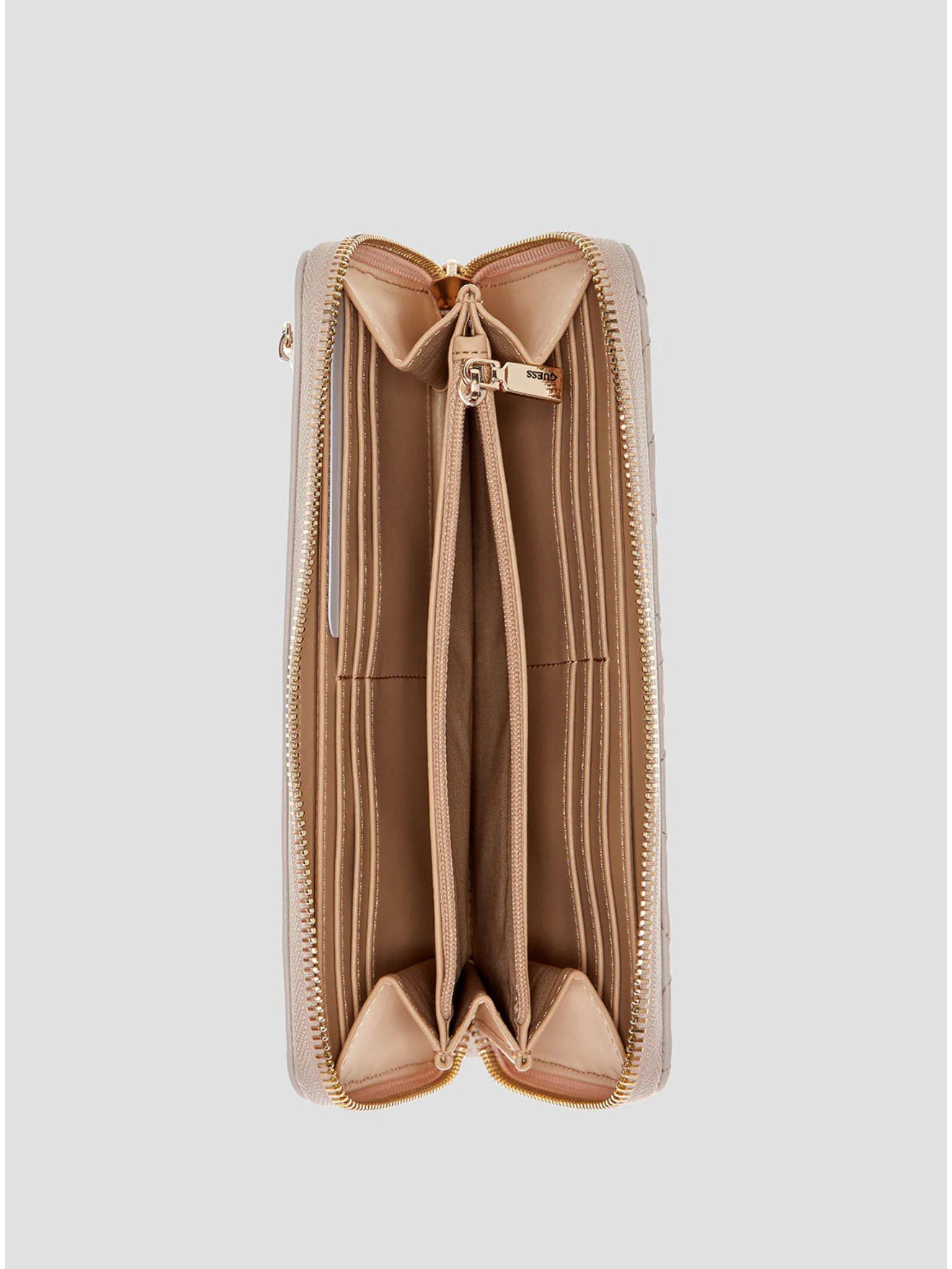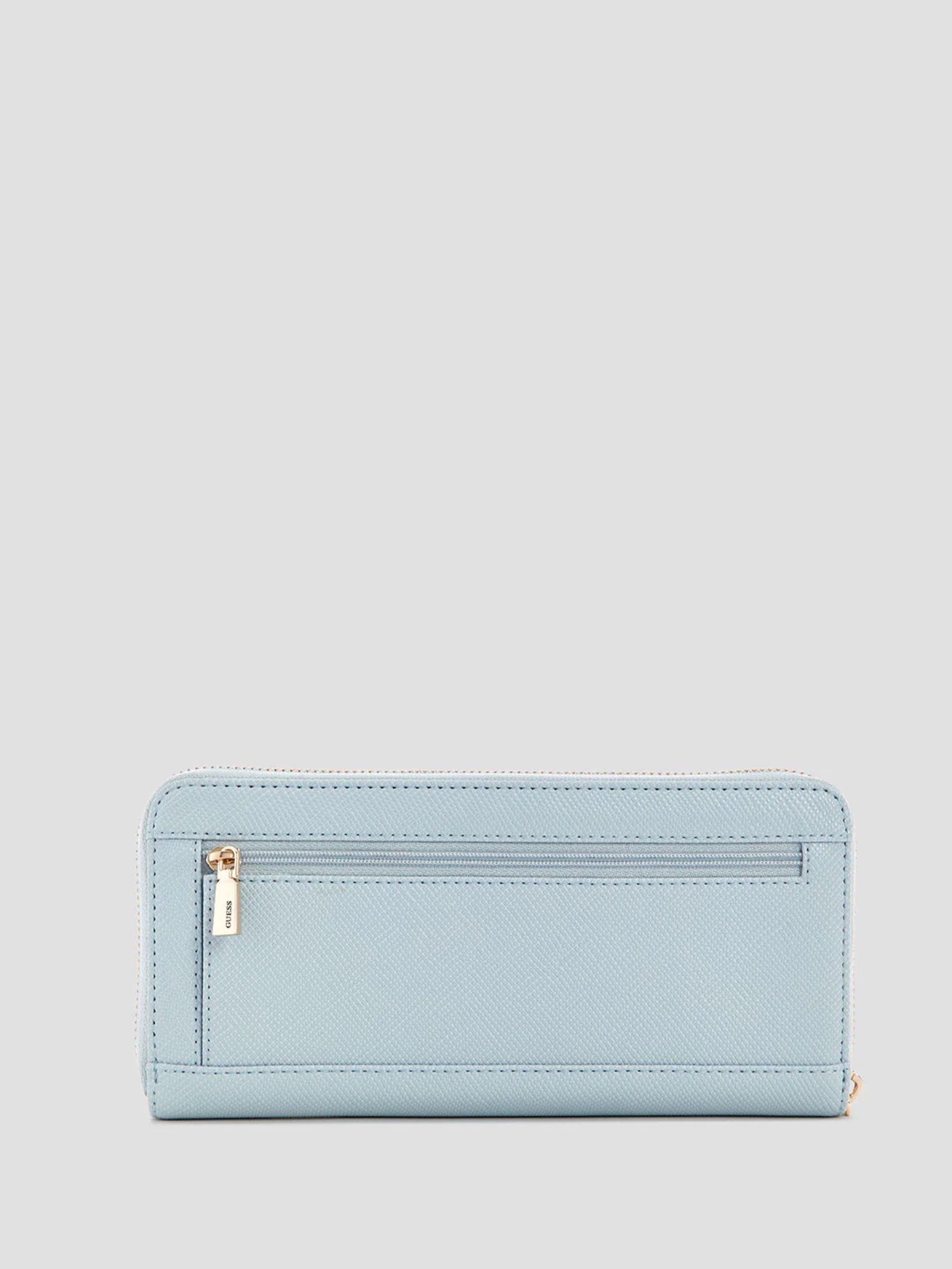 “Keep your essentials organized and secure with Laurel’s Large Zip Around Wallet. With plenty of compartments, including 4 slip pockets, 1 zip pocket, and 12 card slots, plus a detachable 6″” wrist strap, you’ll never lose track of your valuables. Don’t let its size fool you – this wallet means business.”