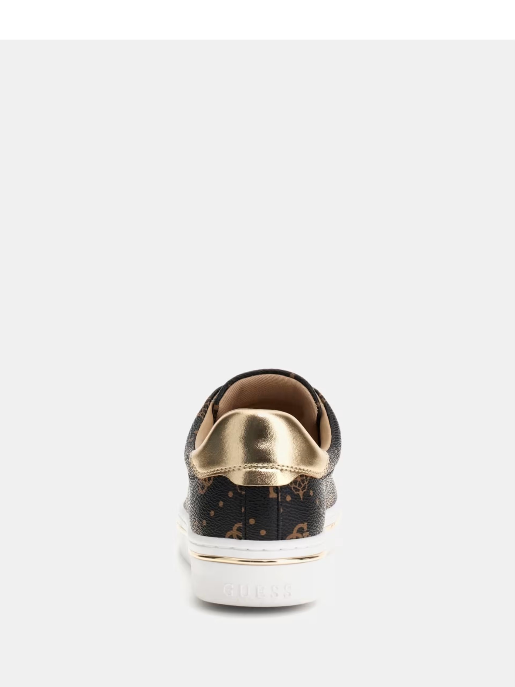Faux-leather sneakers Debossed Quattro G and peony pattern Round toe Low-top silhouette Flat rubber sole with metallic trim Lace-up closure with charm details