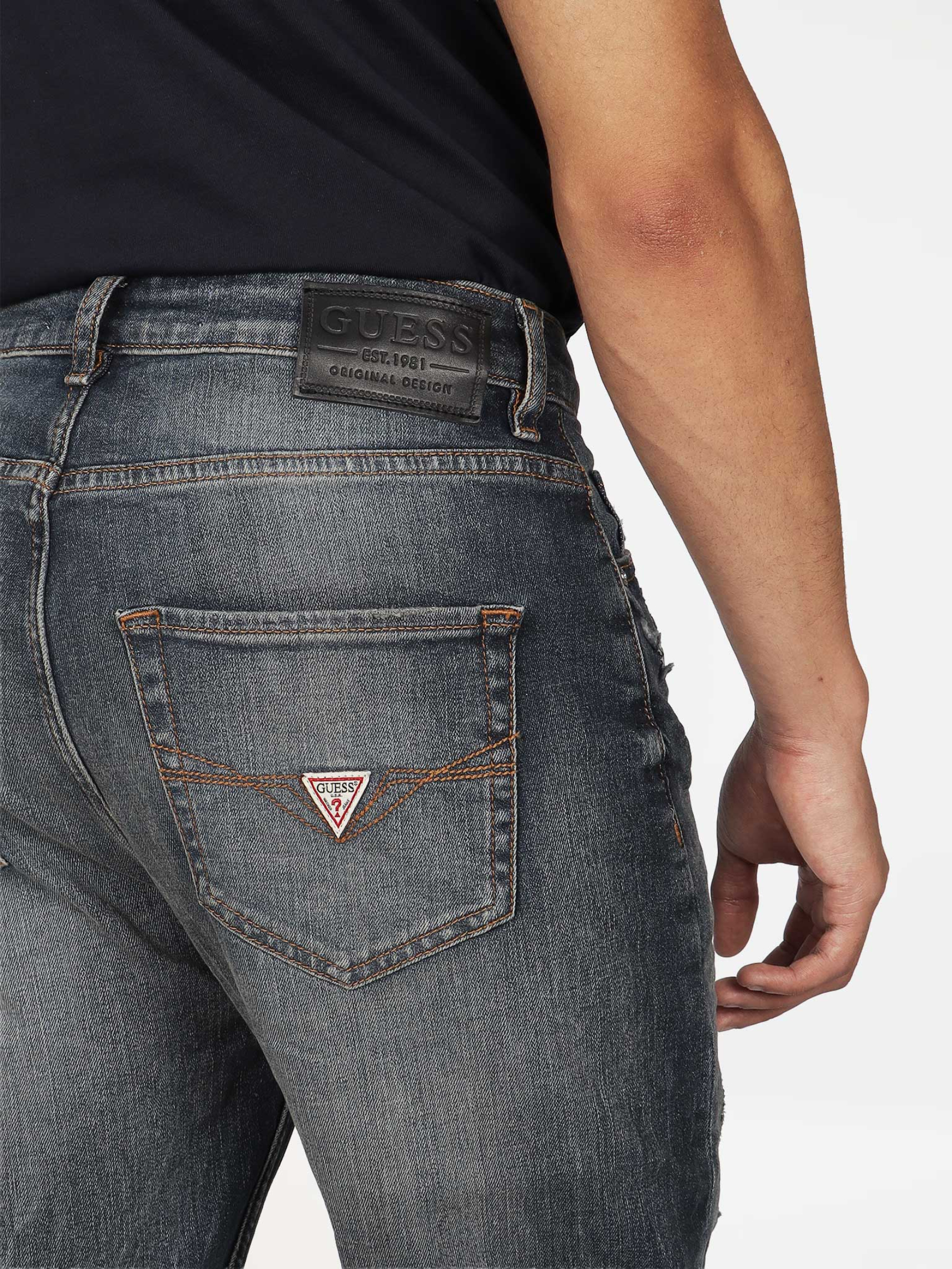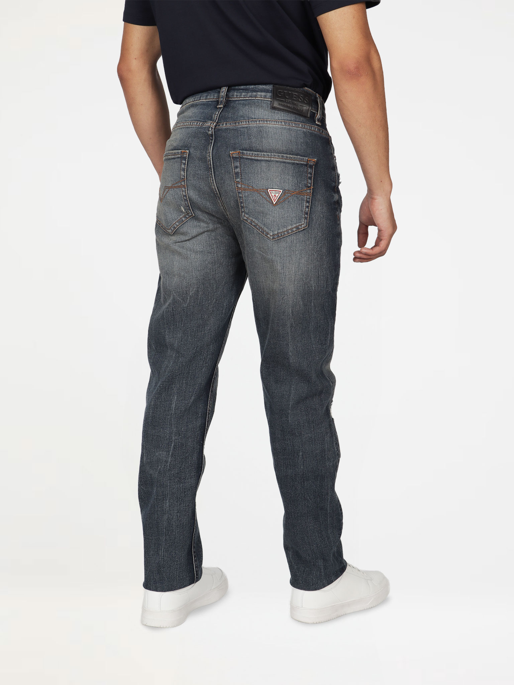 “Regular Denim Tapered Fit Distressed details Classic 5 Pocket Design”