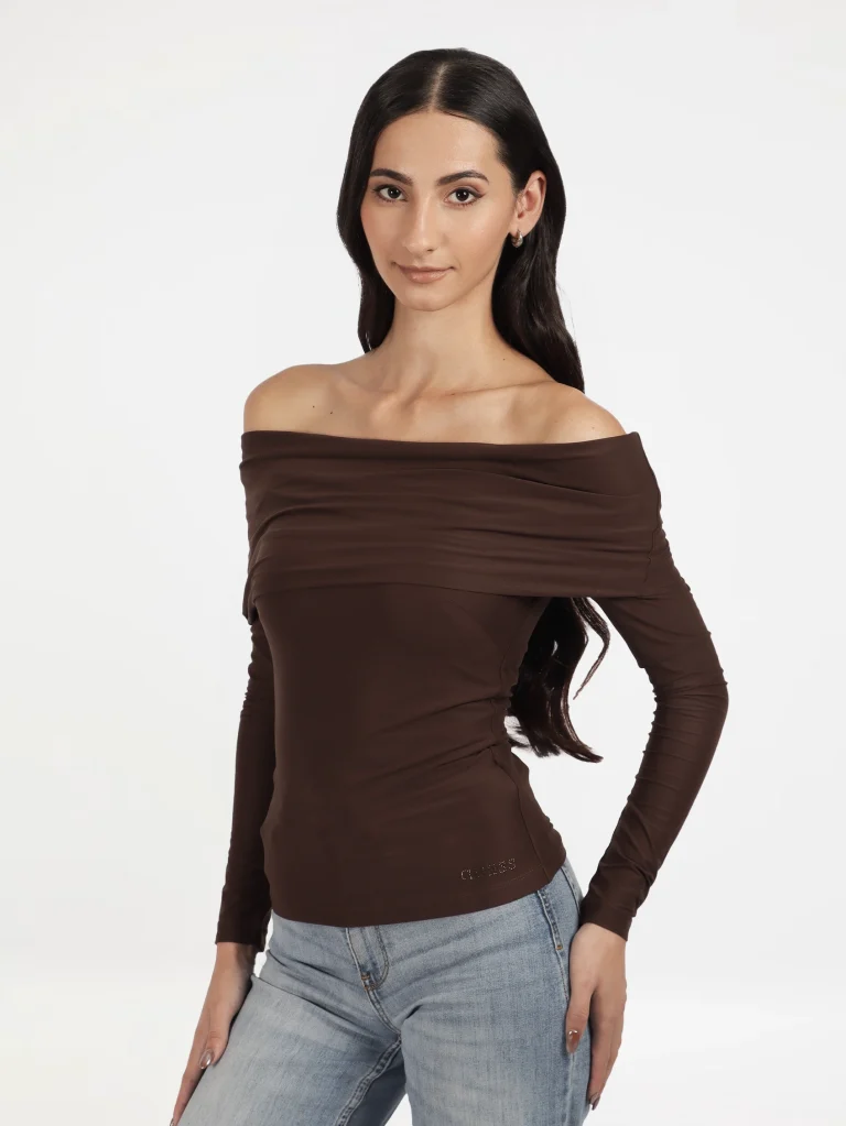 Off-the-shoulder fold over neckline