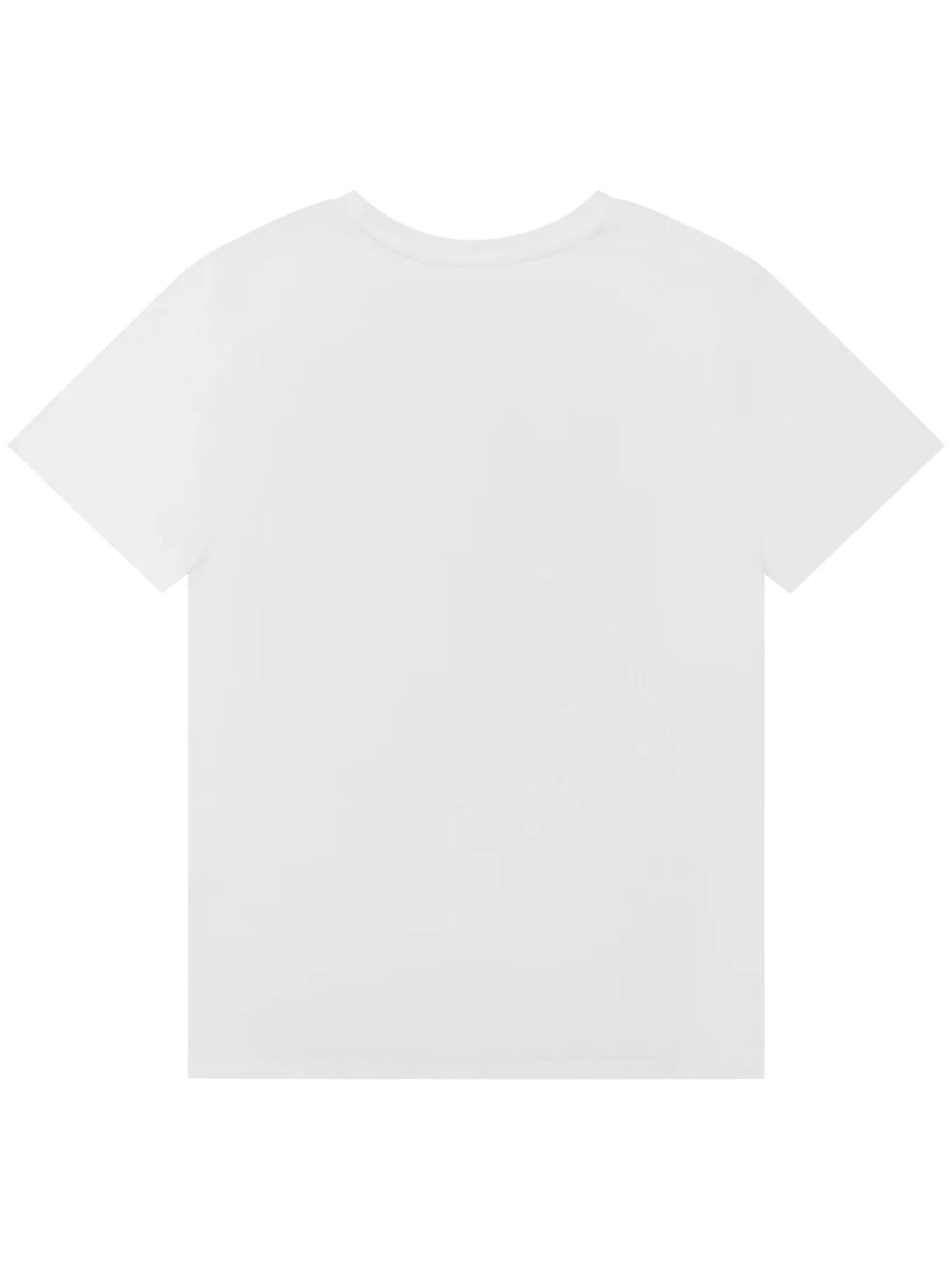 Add a bold statement to his everyday style with this White Graphic T-shirt (7-14). Featuring a retro-inspired GUESS logo design in red and blue, with a comic-style ôWow!ö pop graphic, this short-sleeve tee brings energy and attitude to casual looks. Made from 100% cotton for breathable comfort.