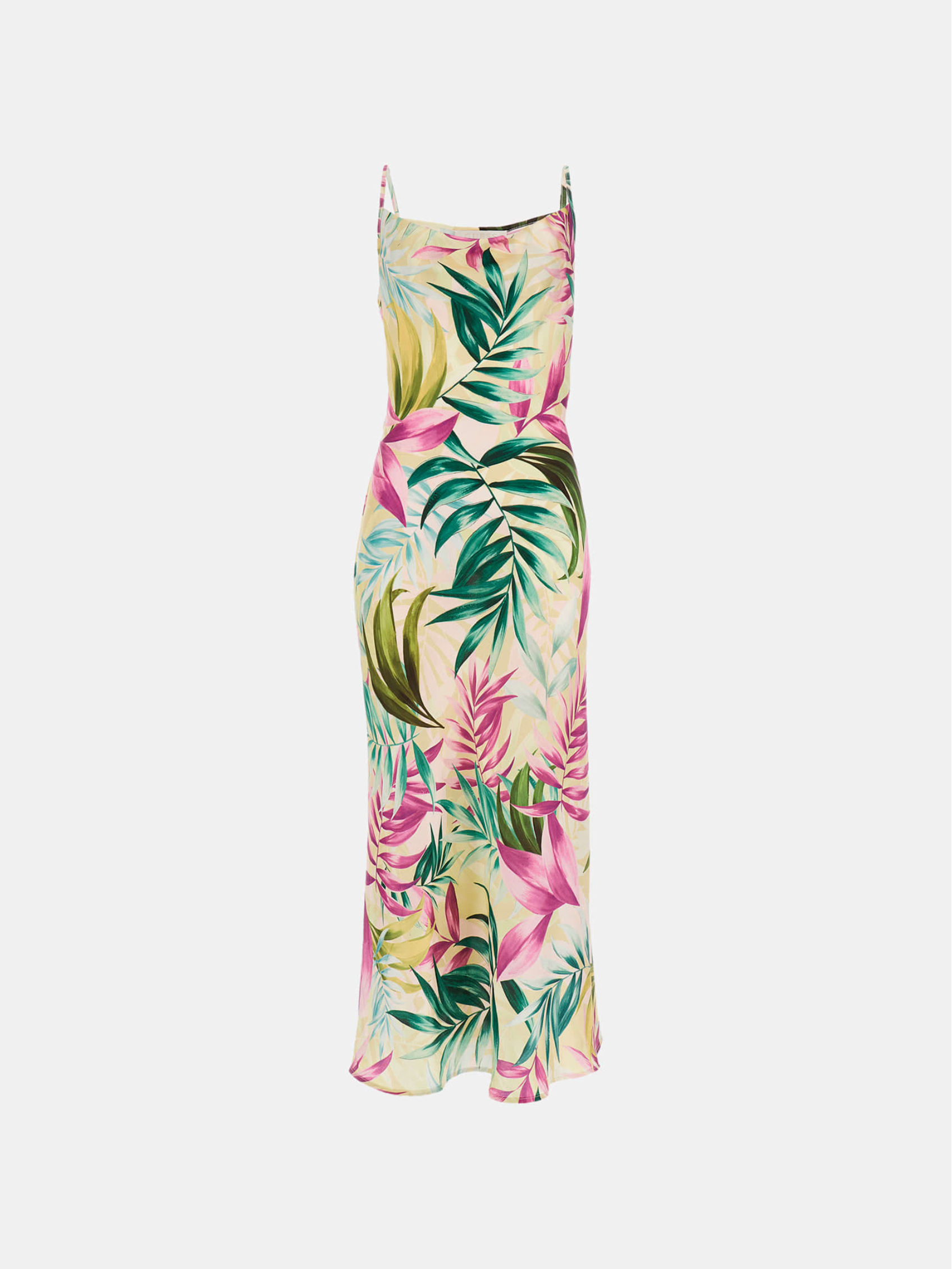 Sleeveless with spaghetti straps.