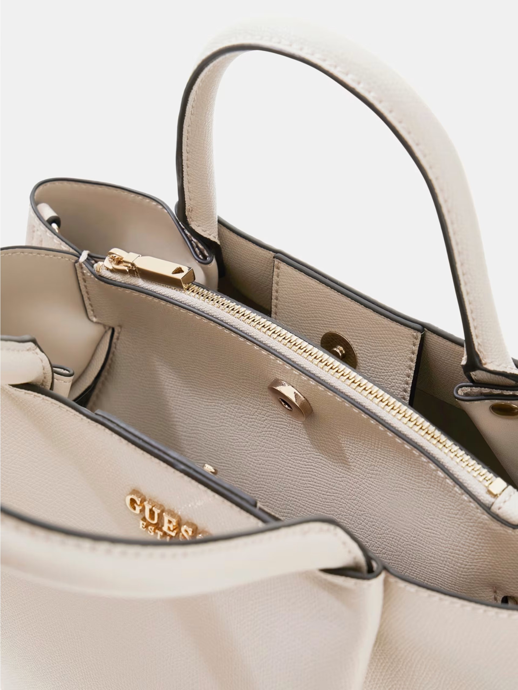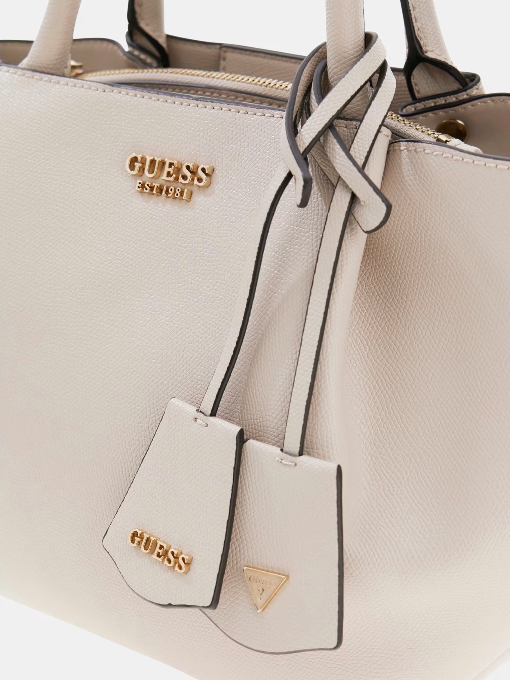 Double top handle Adjustable strap Closure fastening Internal zipper pocket Compartments Guess logo detail