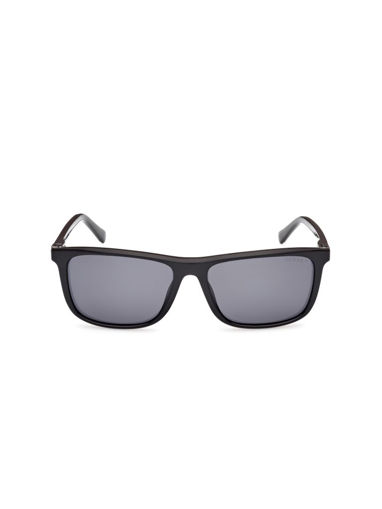 Make a bold statement with these GUESS rectangular sunglasses, designed for the modern man. The shiny black injected plastic frame is paired with smoke-colored lenses, offering both style and maximum eye protection. With polarized lenses and filter protection 3, these sunglasses are the perfect accessory to keep you stylish and shielded from the sun’s rays.