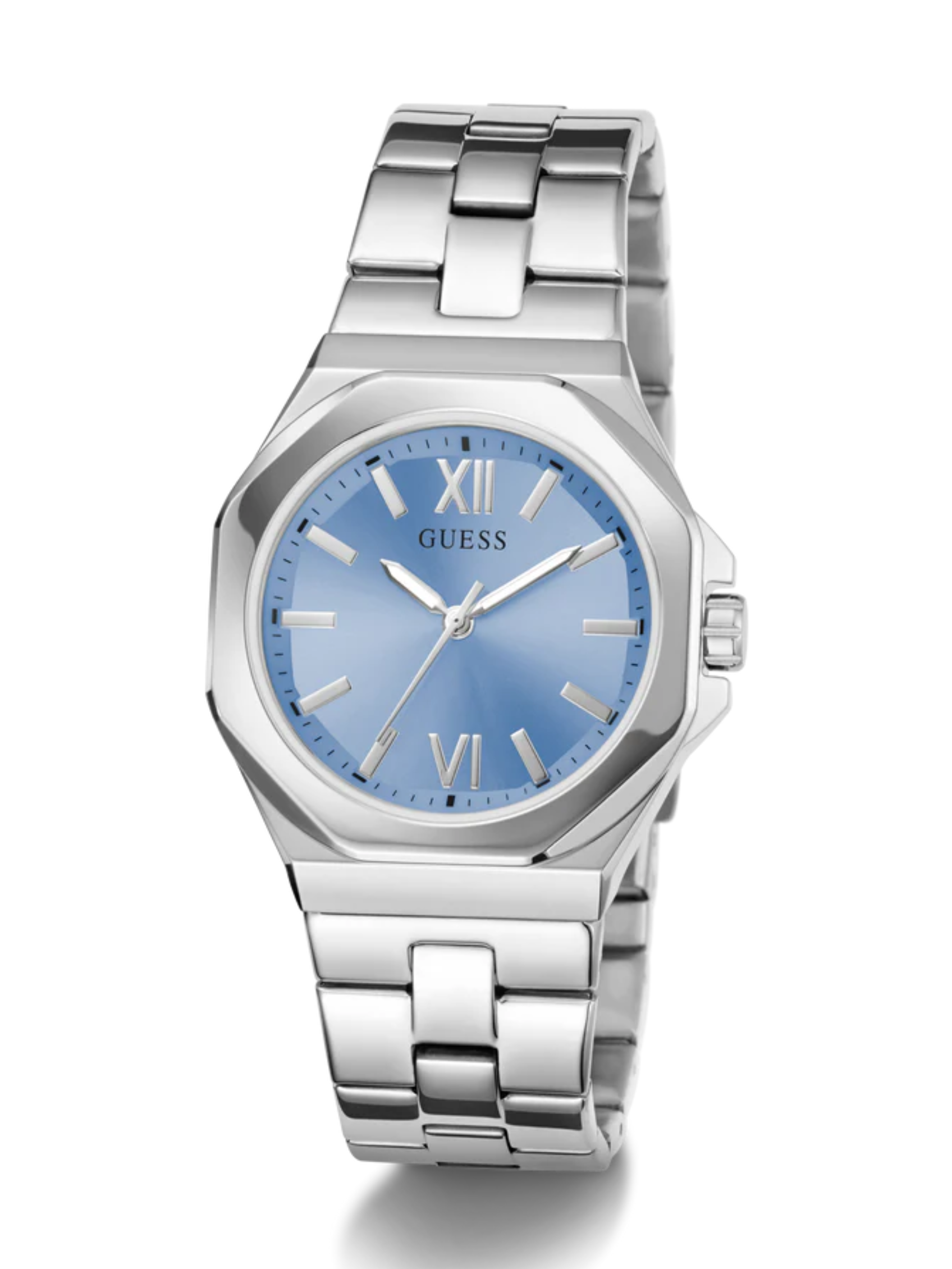 A classic dress look that is sure to elevate her watch wardrobe, this style features an octagonal case shape paired with a polished bracelet.