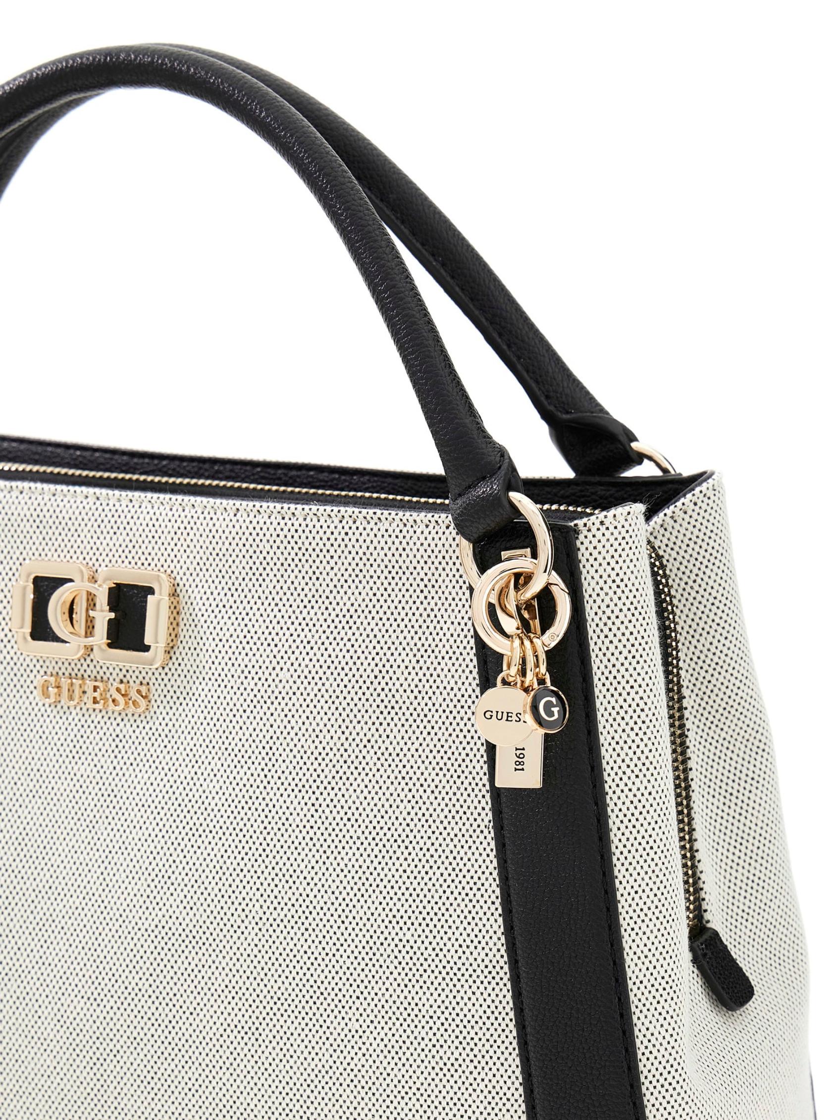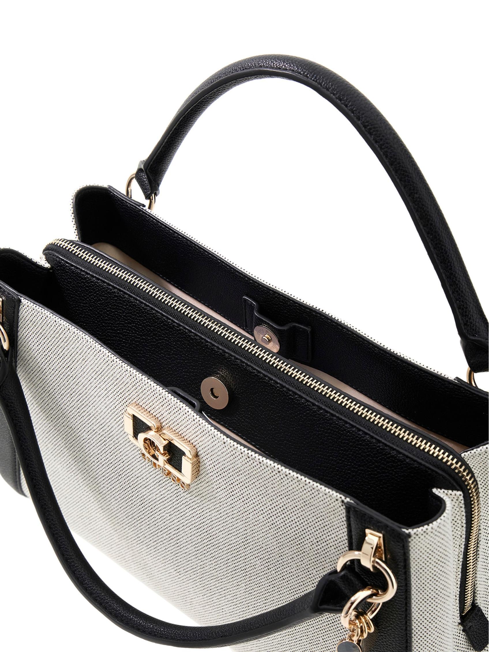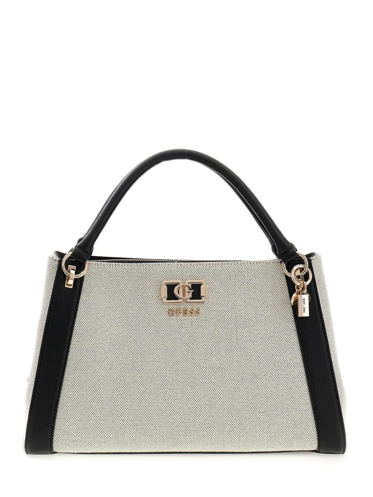 An Elegant Canvas Handbag With An Impressive Faux Leather Switch.